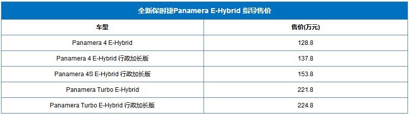 近日,全新保時捷Panamera E-Hybrid售價公布,共推出5款車型,售價區間為128.8-224.8萬。新車預計北京車展上市。