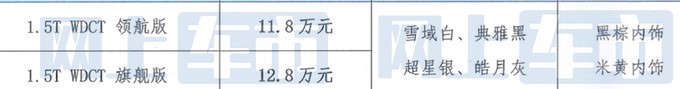 動力方面,新車搭載1.5T發動機,最大功率為130kW,峰值扭矩270N·m。傳動匹配7WDCT濕式雙離合變速箱。