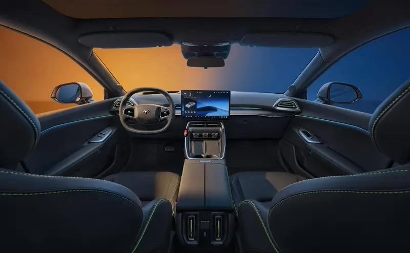 內飾方面,新車采用大尺寸中控屏搭配平底雙輻式方向盤。除此還提供了車內氛圍燈、一體式運動座椅、可視化水晶香氛等。新車采用純黑色內飾配色,搭配熒光綠車身縫線、飾件、安全帶,除此還有霧光棕、輕盈灰兩種內飾配色。