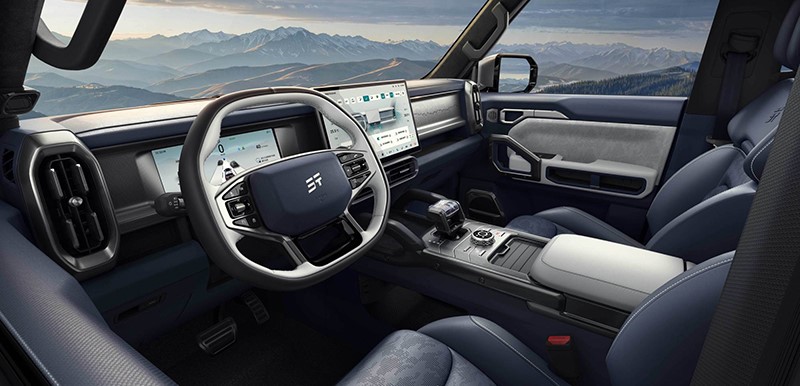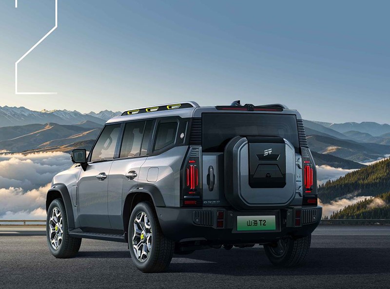 外觀方面,新車造型硬朗復古,黑色貫穿式中網融入大燈組。厚重的前杠還配有兩個熒光黃拖鉤。在車側則采用更立體的輪眉搭配大尺寸輪轂,進一步突顯越野氣息。新車還采用懸浮式車身設計,車側配備腳踏板,車尾則提供小書包設計。車身尺寸方面,新車長寬高分別為4785*2006*1875(1910)mm,軸距2800mm。