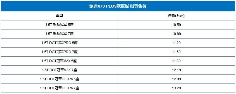 捷途X70 PLUS冠軍版正式上市,共推出8款車型,售價(jià)區(qū)間為10.59-13.29萬(wàn)。新車提供五座及七座車型。
