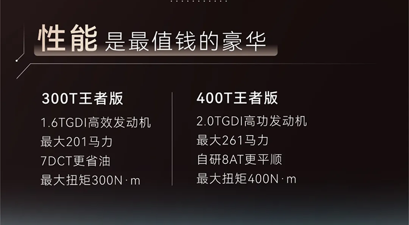動力方面,新車搭載的是1.6T及2.0T發動機,最大功率分別為201馬力、261馬力,峰值扭矩分別為300牛·米、400牛·米,傳動匹配7速濕式雙離合及8速手自一體變速箱。