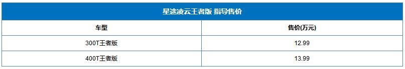 近日,星途凌云王者版上市,共推出2款車型,售價區間為12.99-13.99萬。
