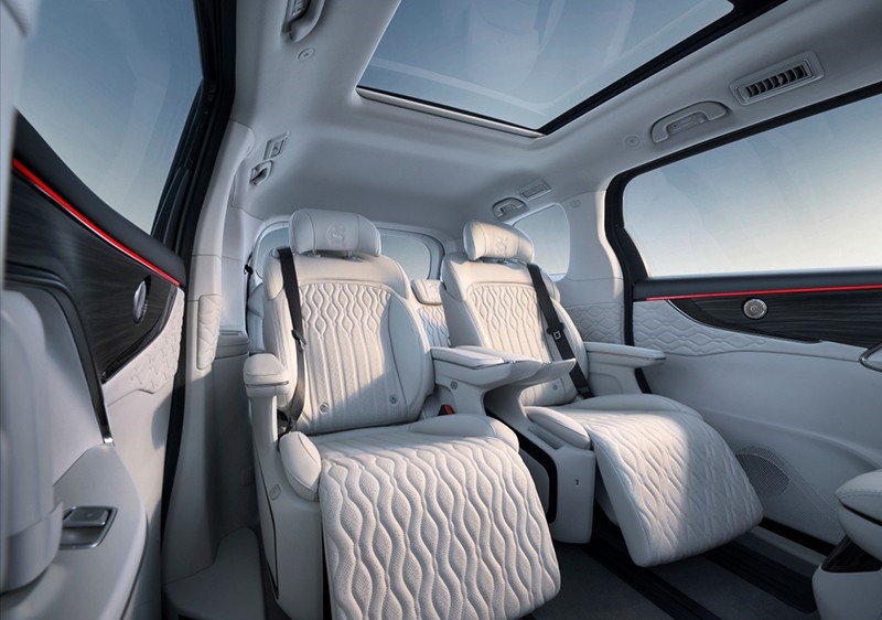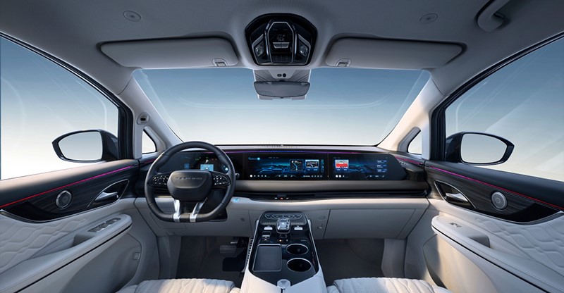 內(nèi)飾方面,新車采用12.3英寸液晶儀表、16.2英寸中控屏及12.3副駕娛樂屏組成的三聯(lián)屏設(shè)計(jì),搭配游艇同款方向盤,內(nèi)置高通驍龍8155芯片。車內(nèi)采用2 2 3的布局,二排配航空座椅,還提供腿托等功能。新車還提供高速NOA功能。