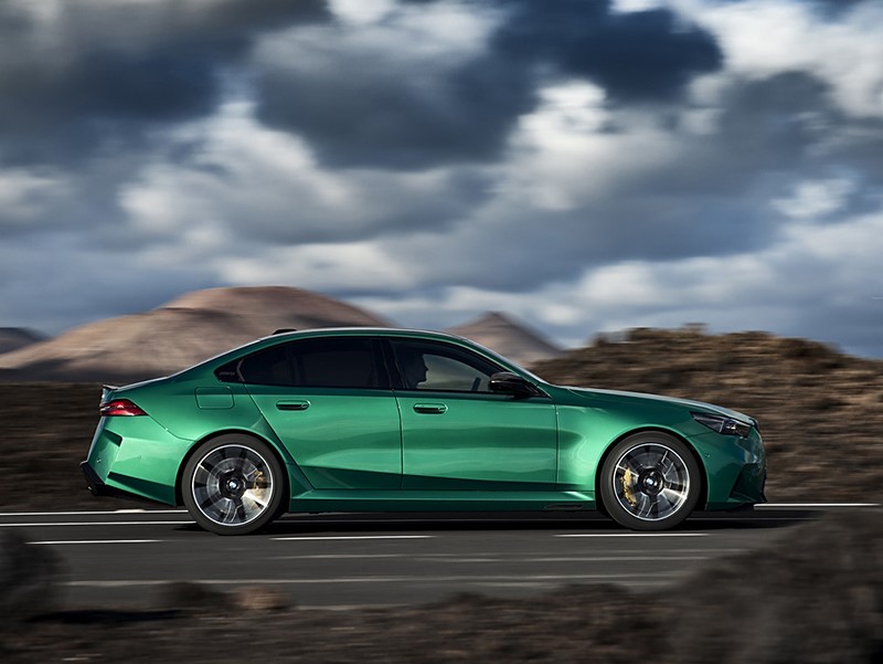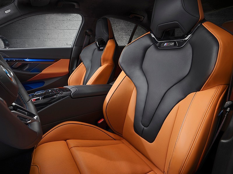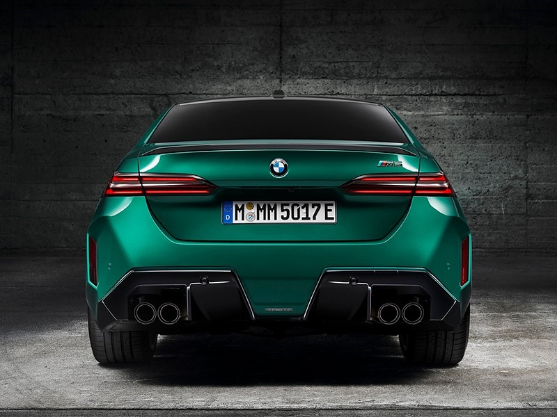 在車側換裝了半隱藏式門把手,重新設計腰線,另外側裙加入了更為犀利切割面設計。在左翼子板還增加了充電口。尾燈造型和5系類似,后包圍則更為運動,雙邊共四出排氣搭配大尺寸擴散器戰斗氣息十足。新車相比現款車寬增加了67mm,離地間隙降低18mm。