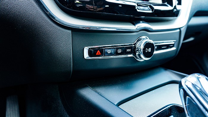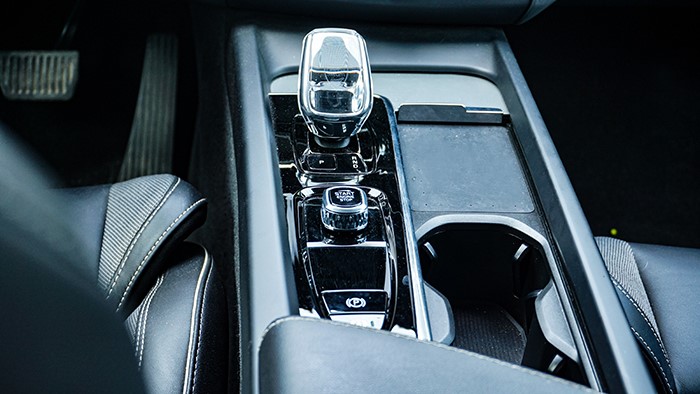XC60一鍵式啟動的方式與其他品牌不同,采用的是旋鈕啟動,旋鈕下方為駕駛模式調節。另外,換擋機構采用了水晶樣式,夜晚可點亮。