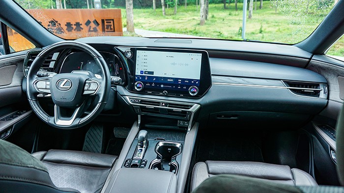 內飾方面依然是典型的雷克薩斯風格,多種材質的搭配細心、妥當,純木材的紋路質感能讓車主很有面子,布局與老款保持一致,駕駛區域略偏向主駕駛一側。大面積軟質材料和縫線處理無論是視覺上還是觸覺上都令人印象深刻。多處細節布置到位,諸如:有格調的中控臺圓形復古表和便利的手機無線充電。