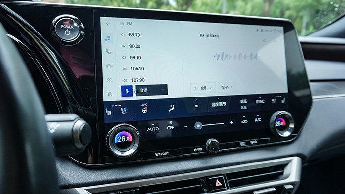 中控臺上方配備了一塊尺寸達14英寸的屏幕,可以顯示各種系統信息,而且由于采用了光控薄膜表面處理工藝,這塊大尺寸屏幕顯示效果逼真,在陽光直射下也能提供卓越的亮度、銳度與對比度。