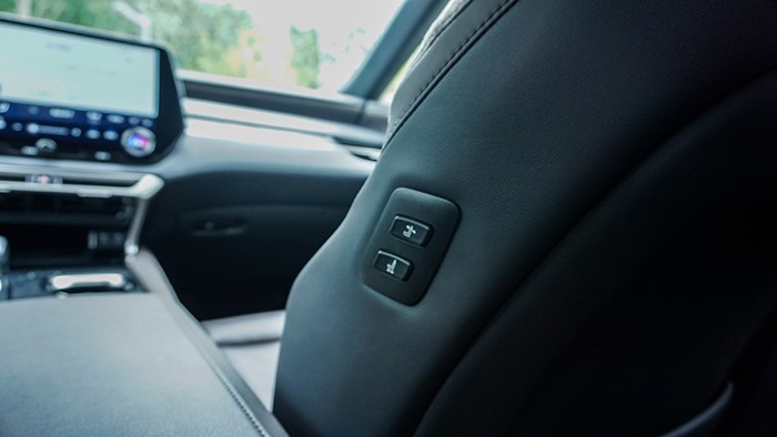 雷克薩斯RX450h+的前排座椅均配備了座椅通風及加熱功能,帶有多項電動調節。座椅的舒適性是雷克薩斯最拿手的,坐上去柔軟程度堪比沙發。第二排座椅同樣舒適,并且地板非常平整。后車窗的手動遮陽簾面積非常大。第二排座椅左右均帶有電動角度調節功能。