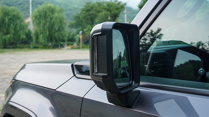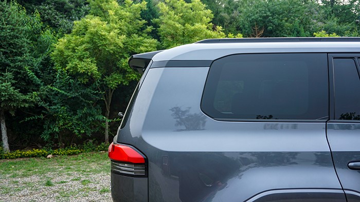 車身側面輪廓線條簡潔利落,展現出SUV的穩重感和力量感。車窗下沿做了階梯式設計,方便駕駛員越野時觀察路況。車身尺寸為4960×1980×1935mm,軸距達到了2850mm。