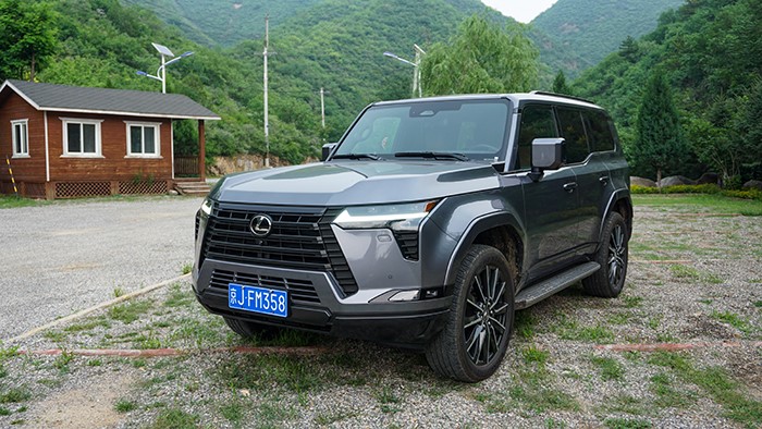 眼前的最新款雷克薩斯GX550h是一款融合了豪華感和力量感的硬派越野SUV,外觀設計充滿了霸氣和優雅。本次拍攝車輛為GX550h 凌峰版,顏色月巖灰,官方指導價為88.8萬元。