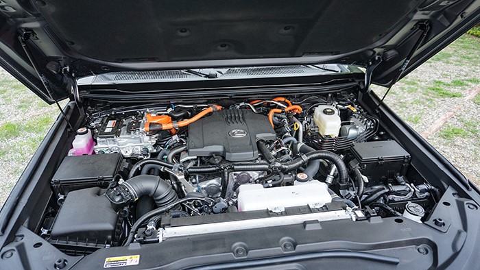 GX550h搭載一臺2.4T/L4/281馬力的混合動力系統,電動機為54馬力。8速手自一體變速箱。車輛使用了托森式差速器。