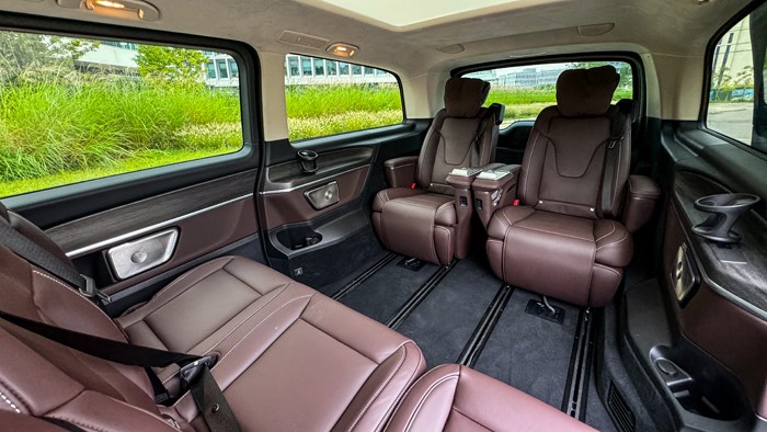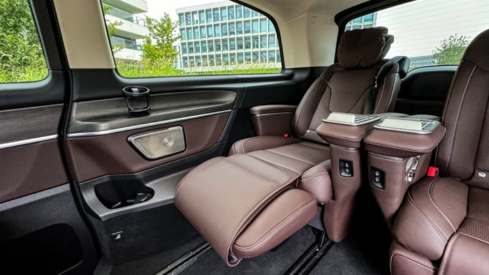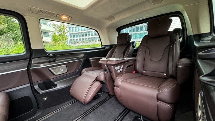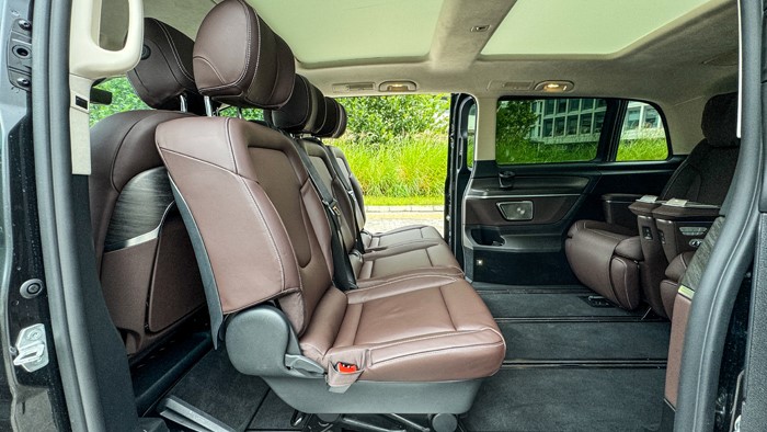 第二排及第三排座椅的布局多樣化是這一次改款值得推薦的內容,如圖所示,這是“會客模式”,原本的第三排被安裝到第二排朝后,第二排航空座椅被布置到第三排,空間得以最大化利用,可以稱作奢侈。