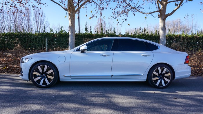 S90屬于中大型轎車,車身尺寸長寬高分別為5090×1879×1453毫米,軸距3061毫米。這個尺寸相對BBA競爭車型來說,有較大的優勢。
