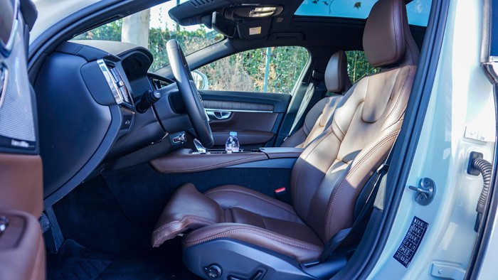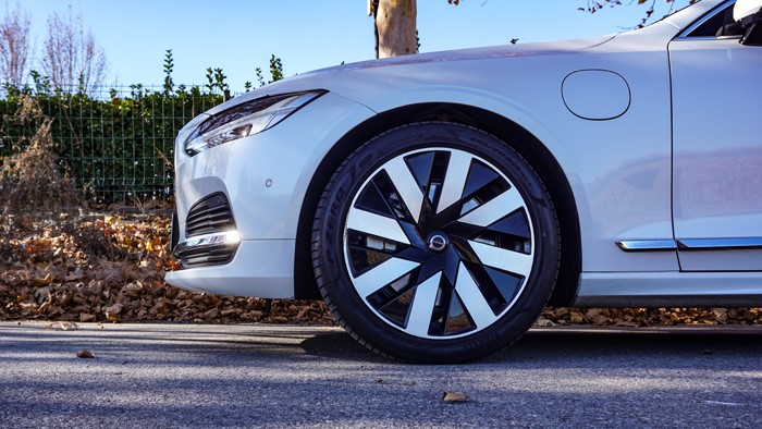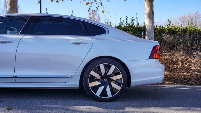 所以,從實際乘坐感上來說,S90是非常優秀的。偌大的一個車,坐進去后,身高180厘米以下的人,感覺都是游刃有余。雙色五輪輻造型的輪轂,讓車運動感十足,輪胎使用了245/45 R18的規格。