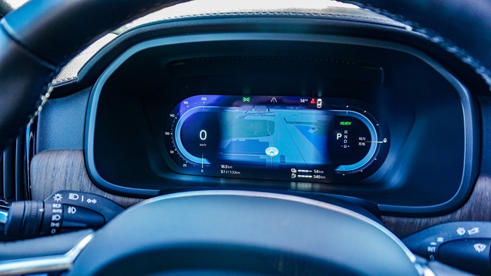 這臺沃爾沃S90插電式混動使用了大量的金屬裝飾面板配合全黑內飾,顯得簡約且豪華。全液晶儀表盤閱讀起來十分清晰。