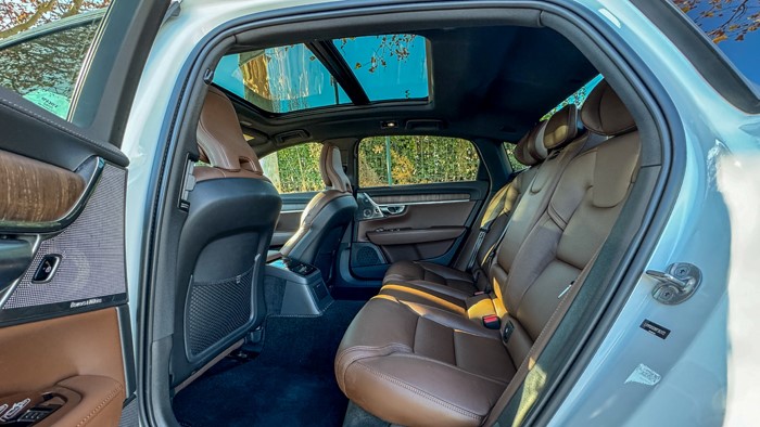 寬大舒適的前后排座椅,軟硬度適中,不是坐上去塌陷的那種感覺,沃爾沃官方稱這樣的設計更適合長途駕駛,避免腰部過早疲勞。后排的空間可以用奢侈來形容,一點也不為過。寶華偉健的音響是絕對高級別的享受配置,效果太棒了。