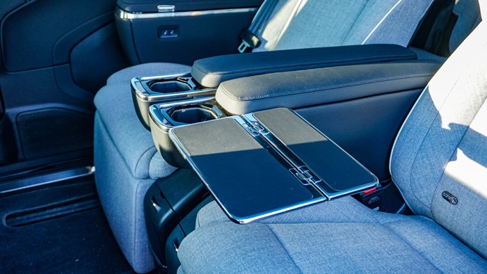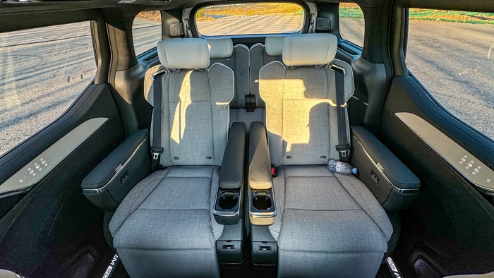 說到尊貴的第二排商務(wù)艙空間,兩個舒適的航空座椅帶有通風(fēng)按摩加熱及一鍵式0重力功能,還有頭頂?shù)亩嗝襟w液晶顯示屏,讓旅途不再枯燥。側(cè)滑門的玻璃是可以電動升降的,還鑲嵌了數(shù)字時鐘,豪華感的營造十分到位。