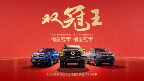 2月,長城皮卡全球銷售17263輛,同比增長65%,環比增長40%;海外銷售5263輛,同比勁增62.2%,環比增長27%。目前,長城皮卡已連續27年銷量第一,全球累計銷量超270萬輛。國內終端市占率近50%,中國每賣出兩臺皮卡,就有一臺是長城。長城炮誕生五年多,全球累計用戶近70萬,累計52個月銷量過萬,蟬聯中國皮卡銷量冠軍。2024年,長城皮卡以國內年度銷量第一、出口銷量第一、國內市占率近50%、霸榜單車型銷量前三的全面領先優勢,引領中國皮卡行業向上躍升;在澳洲、南非、智利市場銷量更是穩居行業前列、中國皮卡品牌榜首。