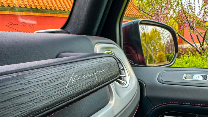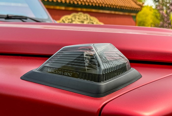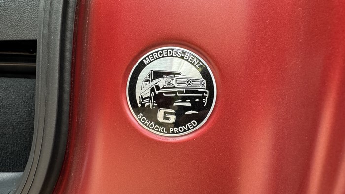 奔馳G500在車輛的主駕駛B柱底部還隱藏了schckl Proved徽章。這枚徽章代表著奔馳G通過了奔馳G系列一直以來專屬的測試場地:奧地利schckl山峰的測試。