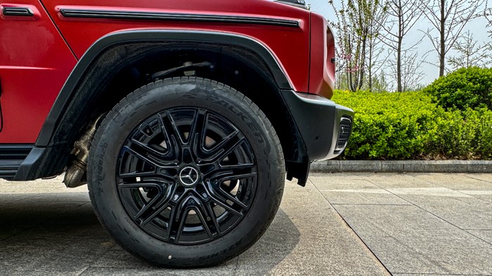 這臺奔馳G500采用275/55 R19輪胎是非常明智的選擇。畢竟G500不像G63那樣,可以為了追求更加極致的公路表現而犧牲車輛的越野能力。額外增加的車身尺寸并沒有給車身設計上造成什么困擾。盡管相比于老款車型來說全新奔馳G看起來更高了,但是實際上車輛的重心比老款車型明顯降低了。