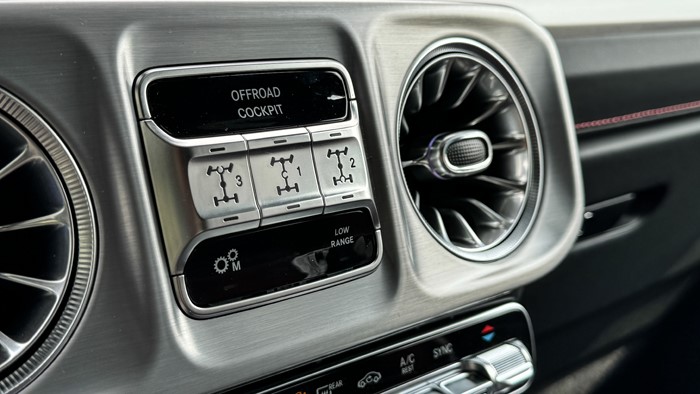 奔馳G的靈魂莫過于車輛前、中、后三把機械式差速鎖了,所以三把鎖的控制按鈕自然不會缺席。還是熟悉的位置,還是熟悉的味道。