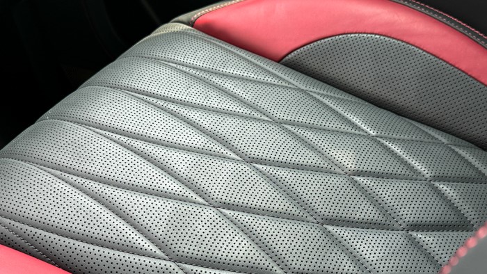 奔馳專有的啞光鋯石英紅在陽光下格外有質感,車輛使用的暗夜套件也讓車更加有氣場。LED前大燈日間行車燈融合成環狀LED燈帶,夜晚很有辨識度。細節上設計師也有考慮:車輛燈組位置和中網并不再處于一個平面,而是更加后來換取更好的風阻系數。