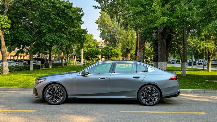 車身側面設計簡潔大氣,線條流暢自然。優雅的車頂線條與動感的腰線相得益彰,展現出寶馬5系獨特的風采。