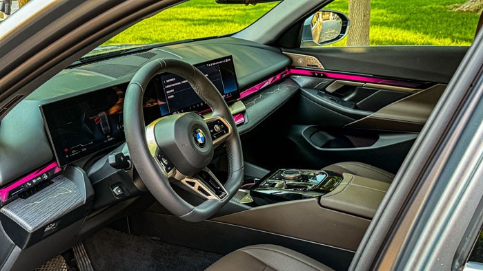 內飾方面,寶馬5系充滿了現代感和科技感,融合了豪華材質、精致工藝和高科技配置。真皮與鋼琴漆裝飾板相結合,很顯檔次,并且車內沒有任何新車的味道,環保用料很講究。