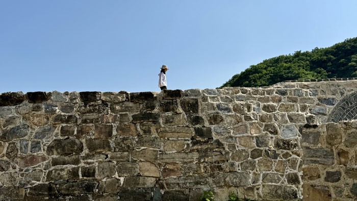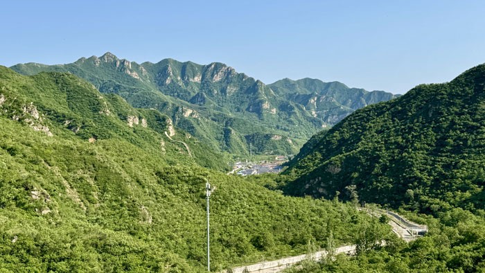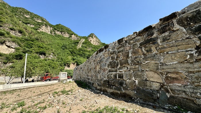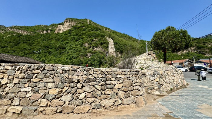 沿著村路可以一直往北走,可以爬上半山腰,回看風景遠處的長峪城村和長城清晰可見。