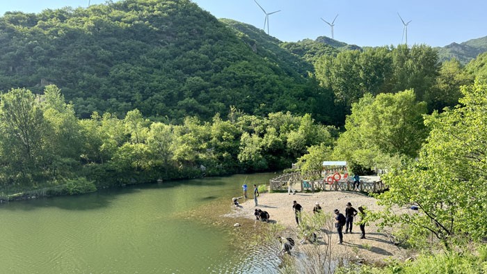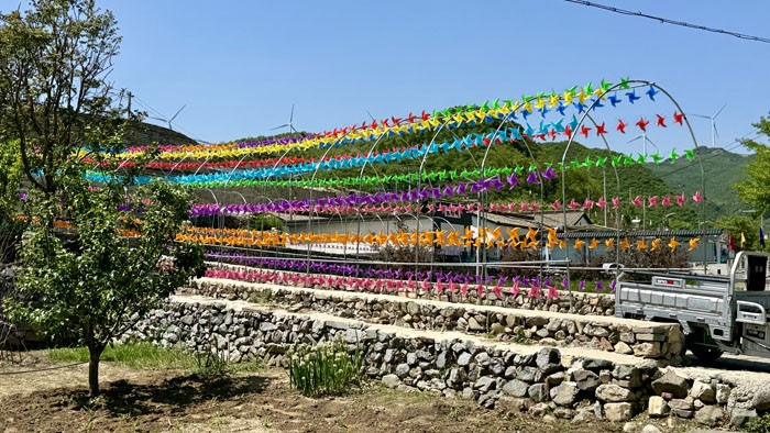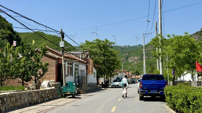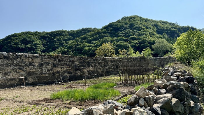 有些風景是城市里看不到的,就像村民家的小菜園、綠油油的大蔥和果樹,隨風轉動的風車讓人身心放松。