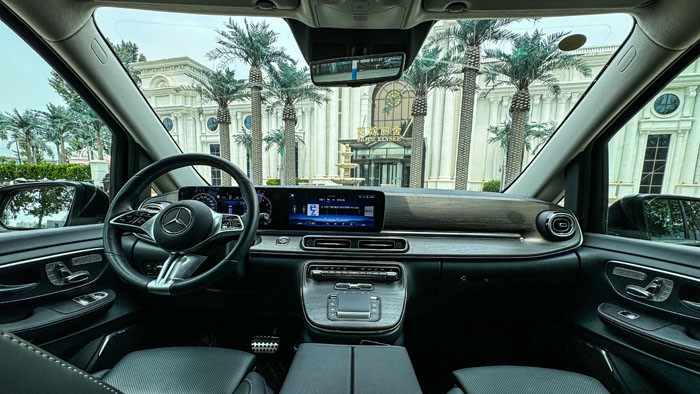 奔馳V300L長軸豪華版在動力上采用汽油機和48V輕混系統,搭載了一臺高效的2.0升渦輪增壓發動機,最大功率可達231馬力,峰值扭矩為370?!っ?。這一動力系統與9速自動變速箱相結合,提供了平順而強勁的加速體驗。跑在上路上絲毫不費力,空氣懸架也讓車內舒適性得以提升。