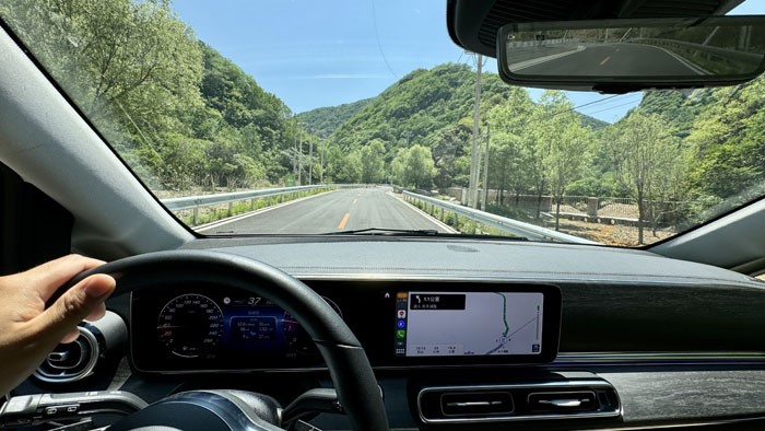 蜿蜒的盤山路上,奔馳V300L的空氣懸掛系統經過精心調校,兼顧了舒適性與操控性,可進行軟硬高低調節。在L2級駕駛輔助協助下,車身穩定性極佳,即使在高速行駛或轉彎時,車輛也能保持良好的平衡與穩定,帶來令人安心的駕駛體驗。內飾的靜音設計有效降低了外界噪音,使車內環境寧靜舒適。