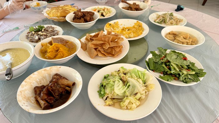 這里是吃豬蹄宴為特色的農家飯,所以我們也入鄉隨俗,點了套餐,每個人70元,豬蹄不限量。聽老板說如果一桌里人多的話還會有燉魚和豬肘子。實際體驗:飯菜口味適中,大人老人孩子都覺得不錯。