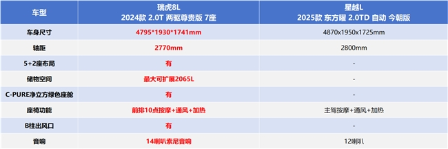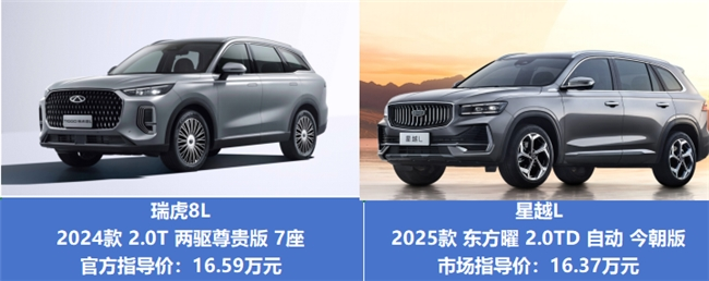 忙工作、忙生活,誰不想路上也能輕松一點(diǎn)?一輛好開的、夠舒服的SUV,或許就是忙碌生活里的松弛感來源。在15萬級熱門家用SUV中,誰更懂你?今天,我們就以該區(qū)間內(nèi)最為熱門的兩款車型——瑞虎8L 2024款 2.0T 兩驅(qū)尊貴版 7座(以下簡稱:瑞虎8L)以及星越L 2025款 東方曜 2.0TD 自動 今朝版(以下簡稱:星越L)為例,看看誰更“善解人意”。