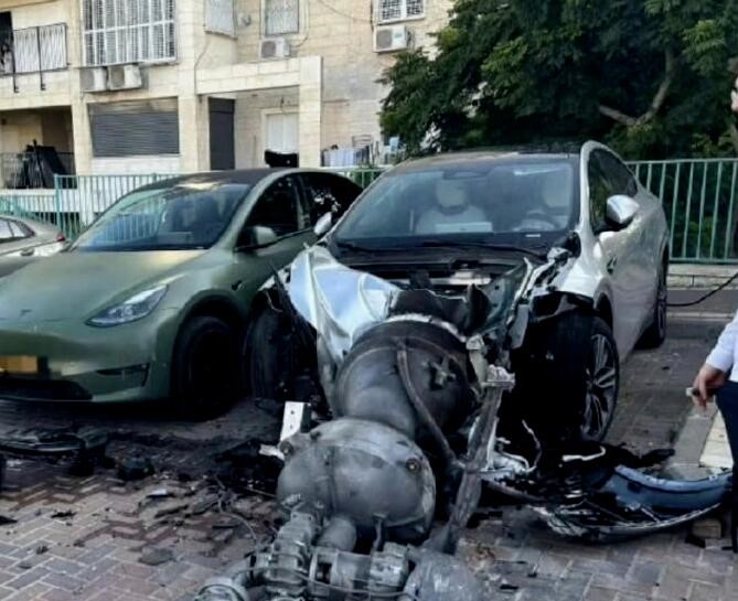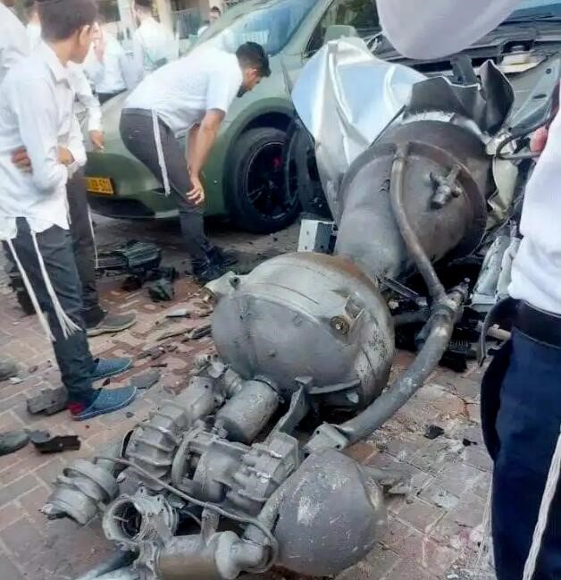 當地時間 6 月 19 日,在伊朗對以色列的導彈襲擊期間,一枚導彈發動機殘骸從天而降,精準砸中了一輛停在路邊的小鵬 G6。