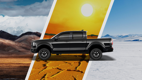 真正的“全球版”,意味著要征服更多極端環境。新車應用的三高適應性技術,能輕松應對高溫、高原、高寒等極端環境。專項配備850W高性能散熱風扇,匹配行業首創越野熱管理模式,炎炎夏日即使大負載長途穿越,也無需擔心。此外在高原地區,海拔4700米仍可實現400N·m扭矩,高原穿越無壓力;采用AGM大容量蓄電池,容量高達92Ah,電容穩定性、低溫可靠性更高,即使面對北方寒冬,冷啟動也可以一鍵搞定!