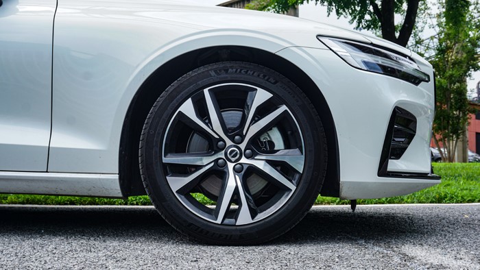 從實際乘坐感上來說,S60是非常適合年輕家庭的。雙色五輪輻造型的輪轂,讓車運動感十足,輪胎使用了235/45 R18的規格。