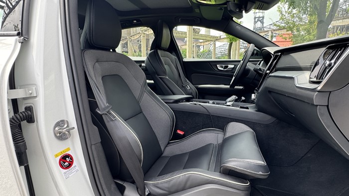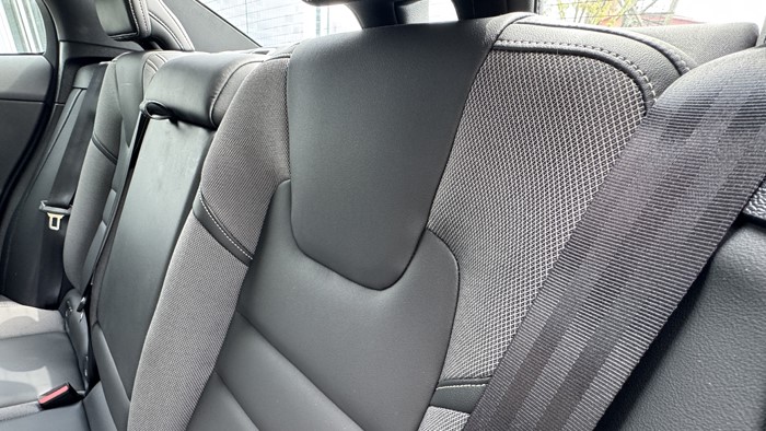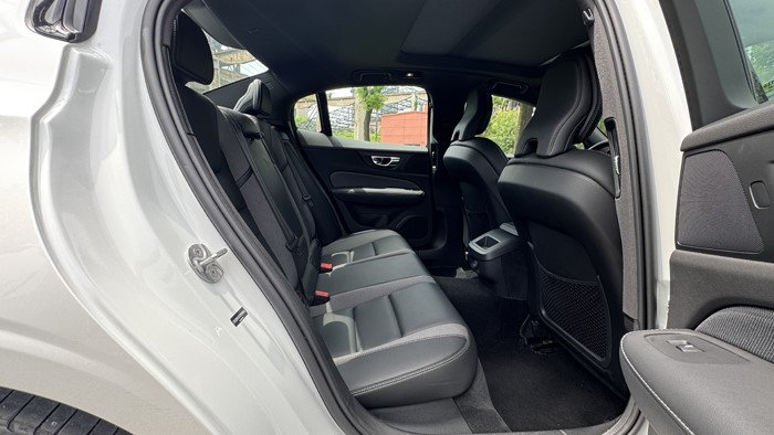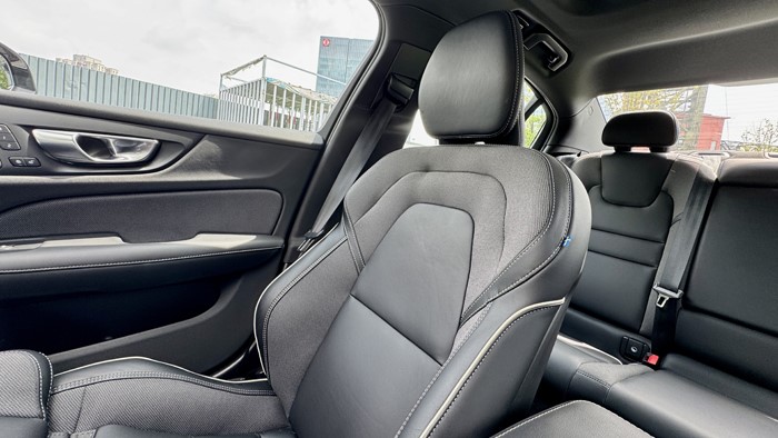 寬大舒適的前后排座椅,采用織物與真皮相間的設計,軟硬度適中,不是坐上去塌陷的那種感覺,沃爾沃官方稱這樣的設計更適合長途駕駛,避免腰部過早疲勞。前排兩個座椅擁有多項電動調節,座墊可電動伸縮長度。后排的空間完全勝任日常使用,中規中矩。