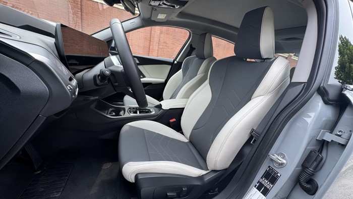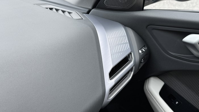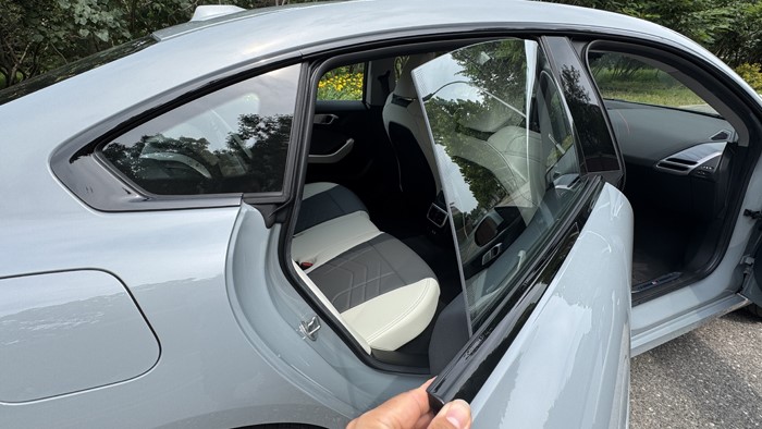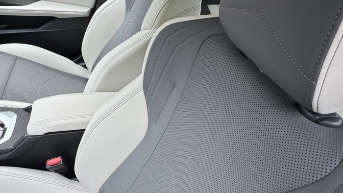 車門板的造型很有時代感,簡潔的幾個線條就將功能合理劃分,視覺和觸感上一流。身體接觸的區(qū)域均為軟性材質(zhì)包裹,灰白雙色的美感充滿著眼球。