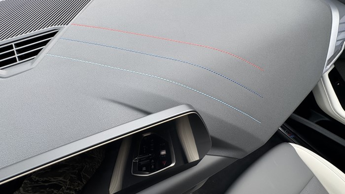 除了車內(nèi)運動感十足的M運動型多功能真皮方向盤,還有前排的運動型座椅同樣給人印象不錯。這個座椅無論從觀感設(shè)計,還是它整體包裹感上來看呢,確實做得相當(dāng)?shù)牡轿?。中控臺三條M運動砸線很是搶眼。