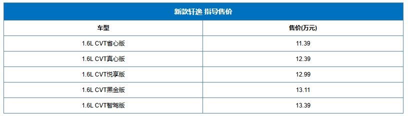 近日,東風日產新款軒逸上市,共推出5款車型,售價區間11.39-13.39萬。