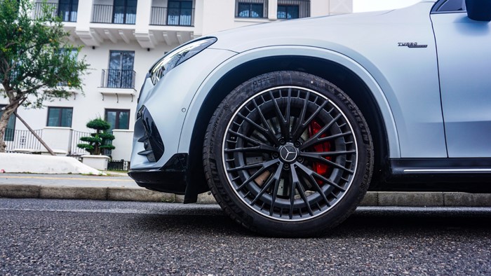 AMG GLC 43的車身線條很流暢,側面的腰線勾勒出動感的輪廓,同時突顯出車身的穩定感。車身的長寬高為:4749*1938*1640mm,軸距2888mm。輪胎規格為米其林:前265/45 R20、后295/40 R20,不過本車選裝了21寸的輪轂。