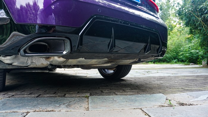 而在車尾部分,車輛采用了熏黑尾燈組,內部“L”形的紅色燈帶營造出了凌厲的視覺效果。這個“L”形尾燈,可以看到8系尾燈影子,雙邊單出的不規則形狀排氣,非常運動。尾部突出來的黑色小尾翼增添了精致感。