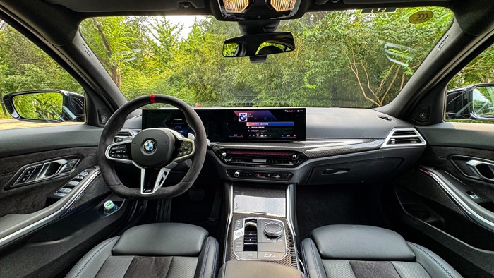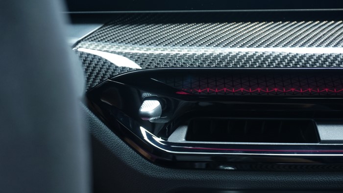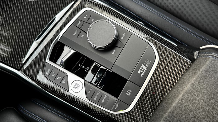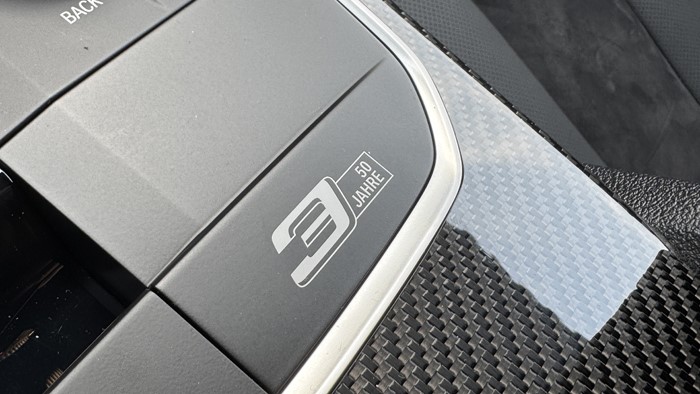 懸浮式液晶屏配合全新造型的電子擋桿以及平底式式麂皮M運動多功能方向盤,讓新車看上去十分年輕、運動,換擋桿區域的裝飾面板采用碳纖維面板,并設計有50周年限量版徽章,視覺和觸感上質感一流。