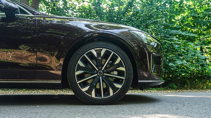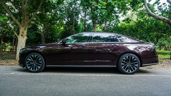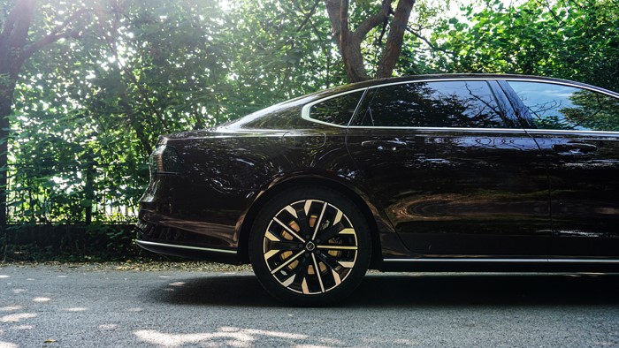 所以,從實際乘坐感上來說,S90是非常優秀的。偌大的一個車,坐進去后,身高180厘米以下的人,感覺都是游刃有余。車輛使用雙色動感造型的輪轂,讓車運動感十足,輪胎使用了255/40 R19的規格。
