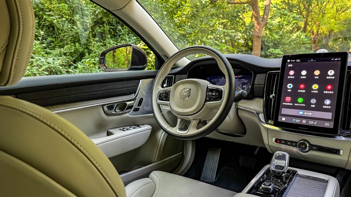 新款S90內飾升級也是可圈可點的,特別是11.2英寸中央觸摸顯示屏,采用LCD(液晶顯示技術) LCF(光線控制膜防反射涂層),可提供超清畫質 防止光線反射和炫光 紅外線觸控技術。支持點擊、劃動、拖動、手寫、放大/縮小,(多點觸控) 集合了駕駛、安全、娛樂的全部功能按鍵,同時包含空調與座椅控制,非常方便。 支持個性化定制界面,整合蘋果Carplay擴展 ,能將蘋果設備的顯示界面同步投射至中央顯示屏 。