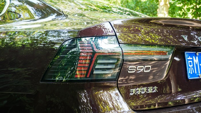 新款的尾燈造型是具有極高辨識度,采用熏黑式處理,“維京之斧”尾燈很難在街上“撞衫”所以在夜晚很容易認出這是一臺沃爾沃S90。