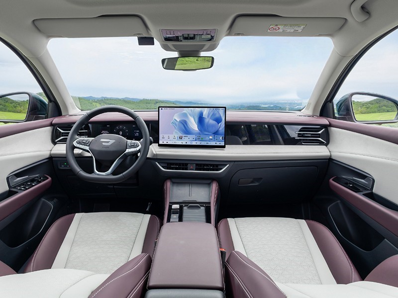 內飾方面,新車采用比較流行的設計風格,14.6英寸大尺寸中控屏搭配10.25英寸液晶儀表及三輻式方向盤。除此還提供環抱式氛圍燈及手機無線充電。座椅加入菱形格縫線點綴。新車將搭載悅行智慧座艙及悅行OS系統。