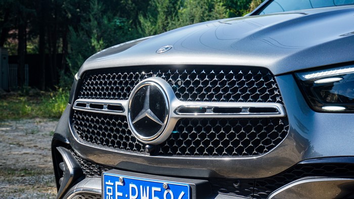 GLE車系在外觀設計方面顯然是非常成功的,整體給人感覺雍容華貴,線條大氣和穩重,外觀上充滿霸氣,前臉是家族特有的格柵,而且是上窄下寬的六邊形設計,中間的大型三叉星徽Logo,氣勢十足。